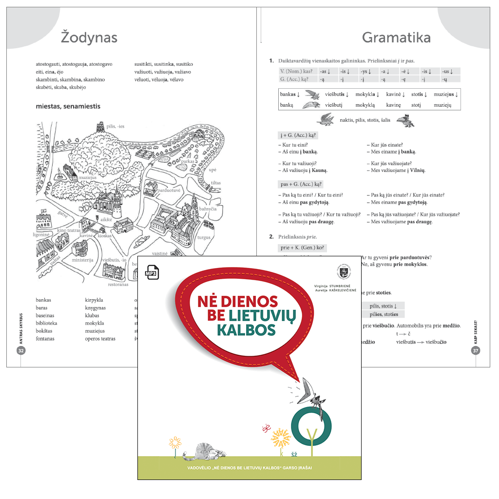 В основе нашей методики — учебник Вильнюсского университета «Nė dienos be lietuvių kalbos». Мы адаптировали материалы учебника под студентов, для которых литовский язык не родной.