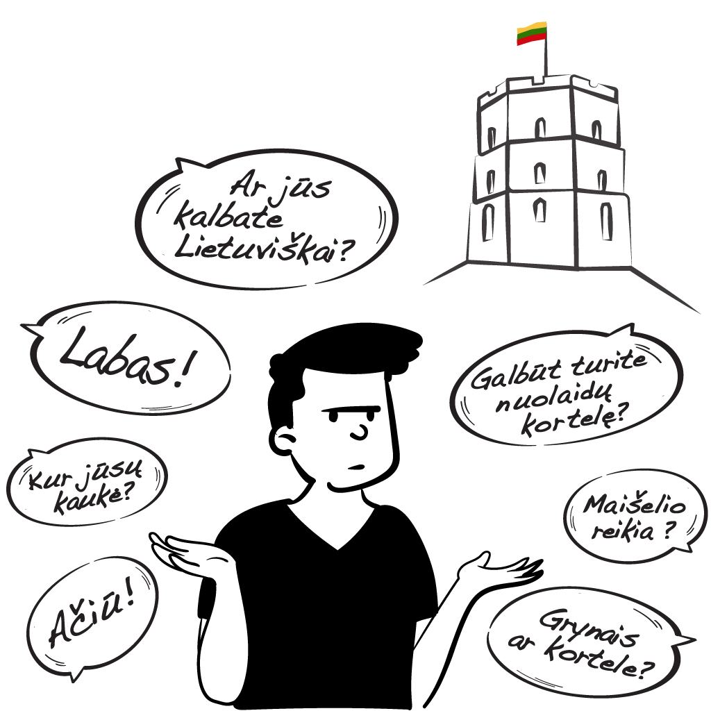 Справляться с простыми жизненными языковыми ситуациями, говорить с другими и понимать их, читать и писать на литовском языке.